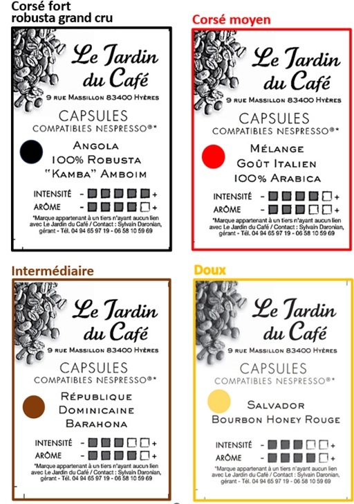 ⊗ Et aussi notre décaféiné étui 10 capsules 4.80 €" En 2013, à l’occasion du salon de la torréfaction à Hyères, Sylvain a la chance de rencontrer une société précurseuse dans la mise en capsules compatible Nespresso*. Il décide de se lancer dans l’aventure avant tout le monde. Le concept est novateur : le café est torréfié maison et ensuite expédié chez Remaprod, entreprise d’encapsulage dans l’Hérault "